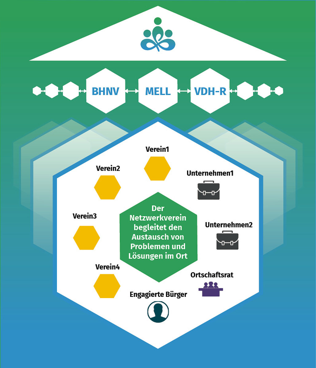 In dem Netzwerk soll in Zukunft aus jedem der neun Heidedörfer ein Verein (federführender Verein) vertreten sein. Die federführenden Vereine des Netzwerks organisieren in ihren Ortsteilen gemeinsam mit den Ortschafträten, den übrigen Vereinen und anderen Engagierten sowie örtliche Unternehmen ehrenamtliche Aktivitäten in allen Bereichen des dörflichen Lebens.